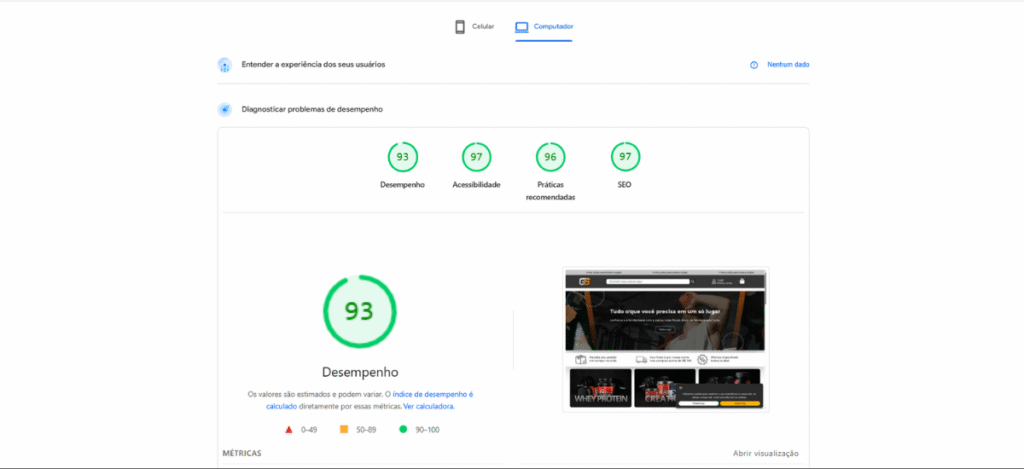 Desempenho dos sites