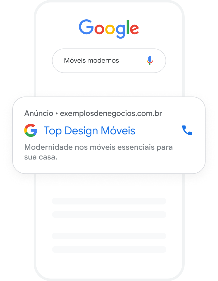 Ajude a gerar vendas, leads ou tráfego exibindo a sua empresa para quem está ativamente pesquisando por produtos ou serviços oferecidos por você.